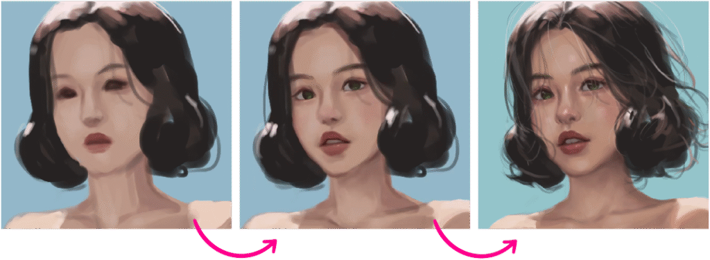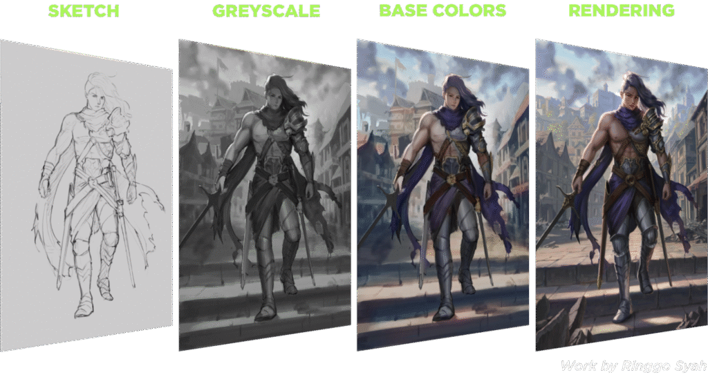 - Feedback, koreksi, & overpaint di setiap tahap